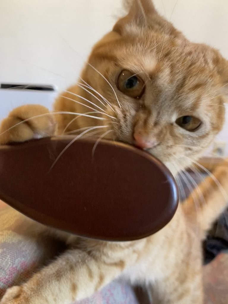 くしガブガブ おから 2023.04.10 今日は私用のため仕事を休んだので、朝からおからと遊んでいます。 この窓枠から外を見るのが大好きです。防犯&脱走防止で格子を取り付ける予定です。本日はその図面を業者さんが持って来てくださる予定です。4月中には取付完了できたらいいな 体をくしでといてあげようとしましたが気分ではなかったようで怒りの表情でくしをガブガブしてきました。すごい顔!