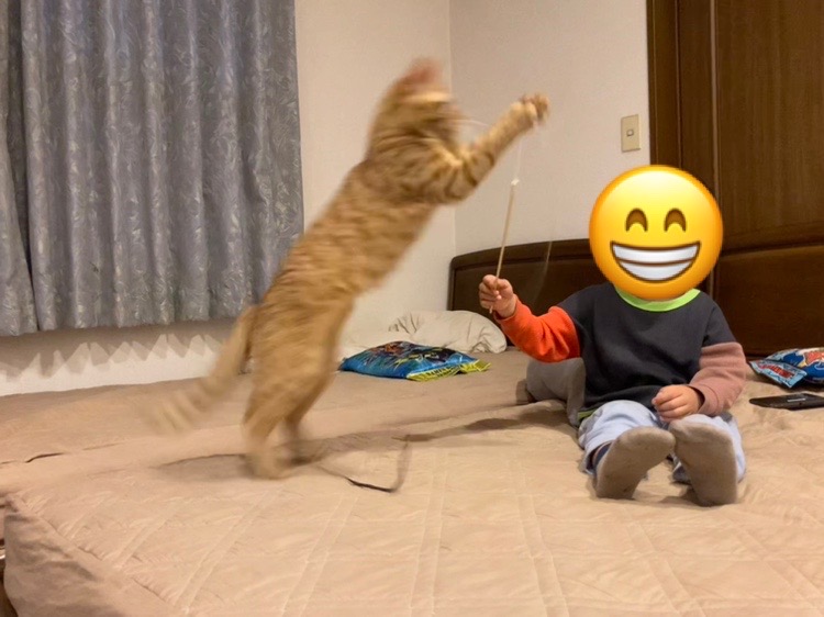 何回か飛びついた後、無事におもちゃと遊べました!!