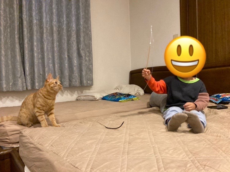 そこに子供が登場しおもちゃで誘うと・・・