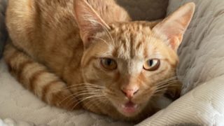 友人が家に遊びに来てくれました!おから、初めての人には人見知りします!めちゃくちゃ嫌そうな顔!!!すぐ逃げてました!!助けてくれにゃ〜とおからちゃん。