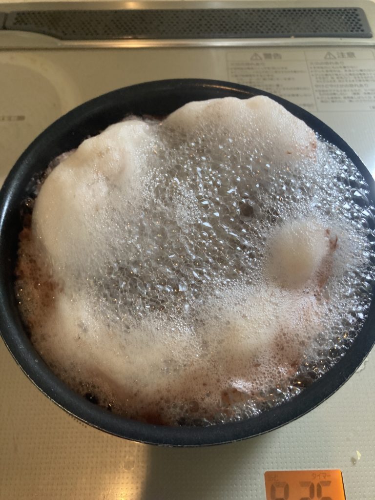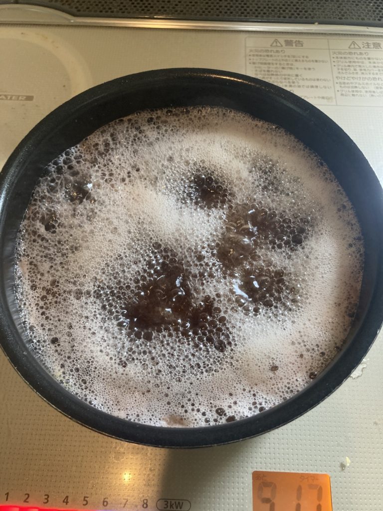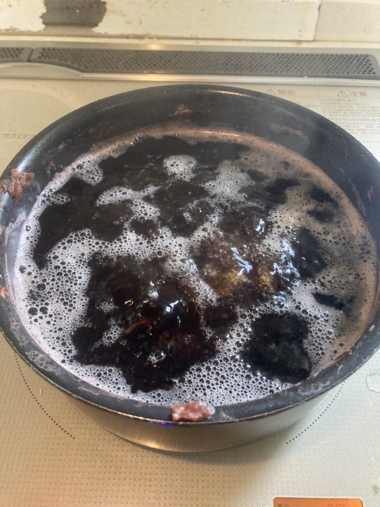 すごいアク、真っ黒