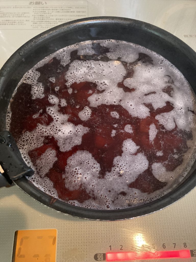 砂糖を加えますが、何度かに分けて加えるのが甘さを染み込ませるポイントだそう。