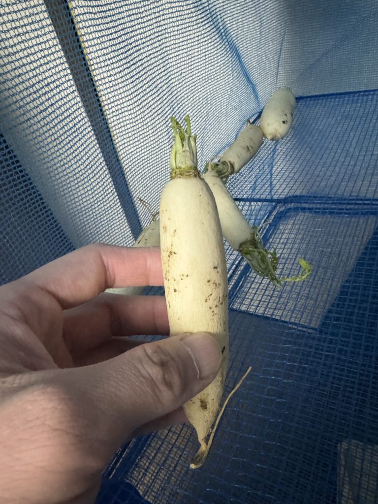 先日の日曜日に手のひらサイズの大根を天日干ししました。